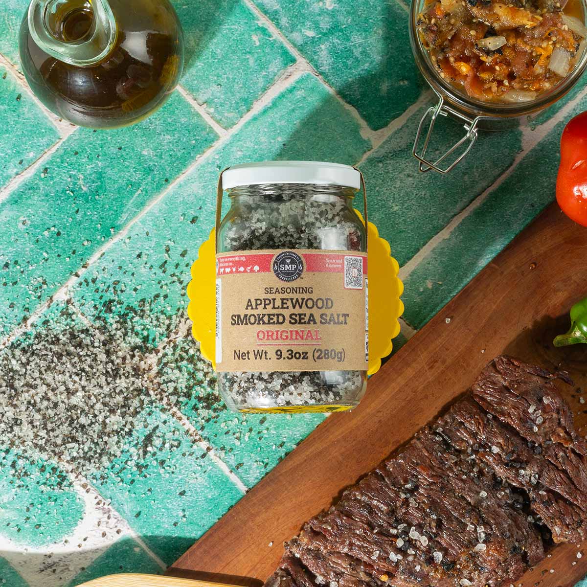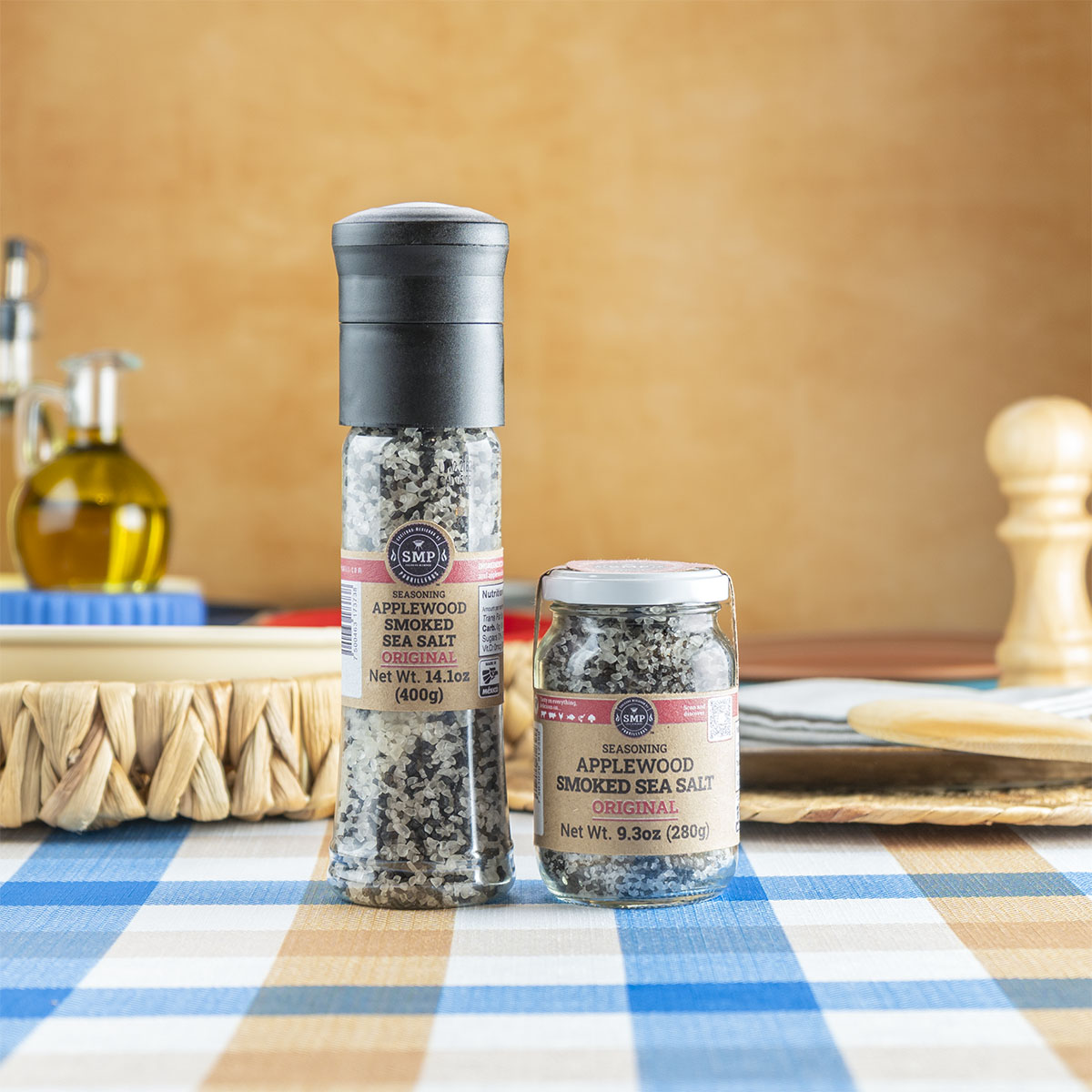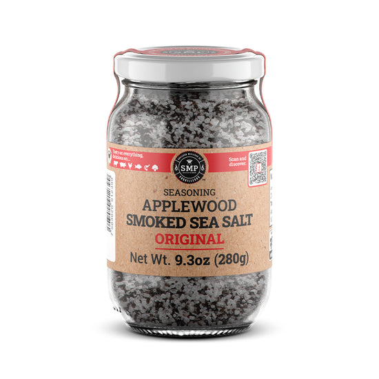 Our Smoked Sea Salt delivers a bold yet balanced smoky flavor. Naturally smoked over applewood, its crystals melt with heat, infusing steaks, pastas, veggies, even desserts, with deep, smoky aromas and a taste of tradition. It’s the essence that launched the entire SMP line.